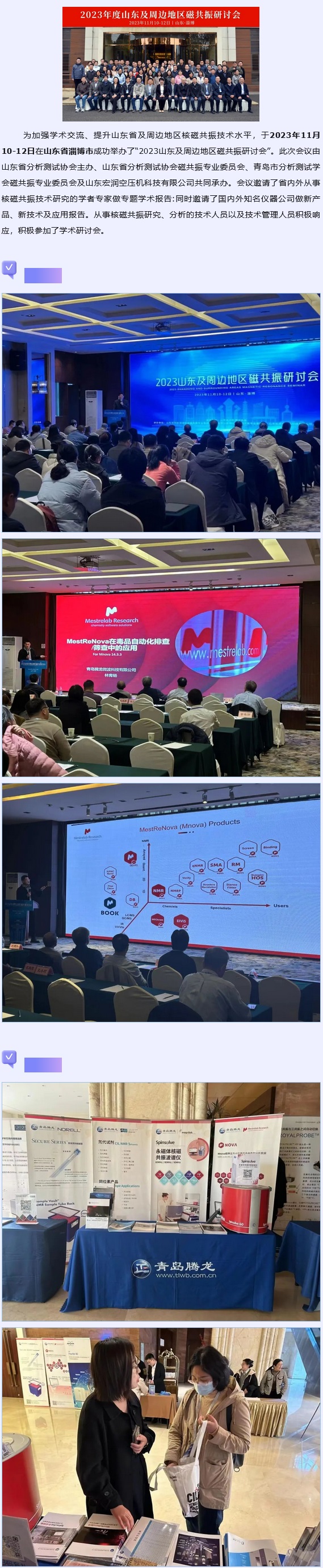 為加強學(xué)術(shù)交流、提升山東省及周邊地區(qū)核磁共振技術(shù)水平,于2023年11月10-12日在山東省淄博市成功舉辦了“2023山東及周邊地區(qū)磁共振研討會”。此次會議由山東省分析測試協(xié)會主辦、山東省分析測試協(xié)會磁共振專業(yè)委員會、青島市分析測試學(xué)會磁共振專業(yè)委員會及山東宏潤空壓機科技有限公司共同承辦。會議邀請了省內(nèi)外從事核磁共振技術(shù)研究的學(xué)者專家做專題學(xué)術(shù)報告:同時邀請了國內(nèi)外知名儀器公司做新產(chǎn)品、新技術(shù)及應(yīng)用報告。從事核磁共振研究、分析的技術(shù)人員以及技術(shù)管理人員積極響應(yīng),積極參加了學(xué)術(shù)研討會。