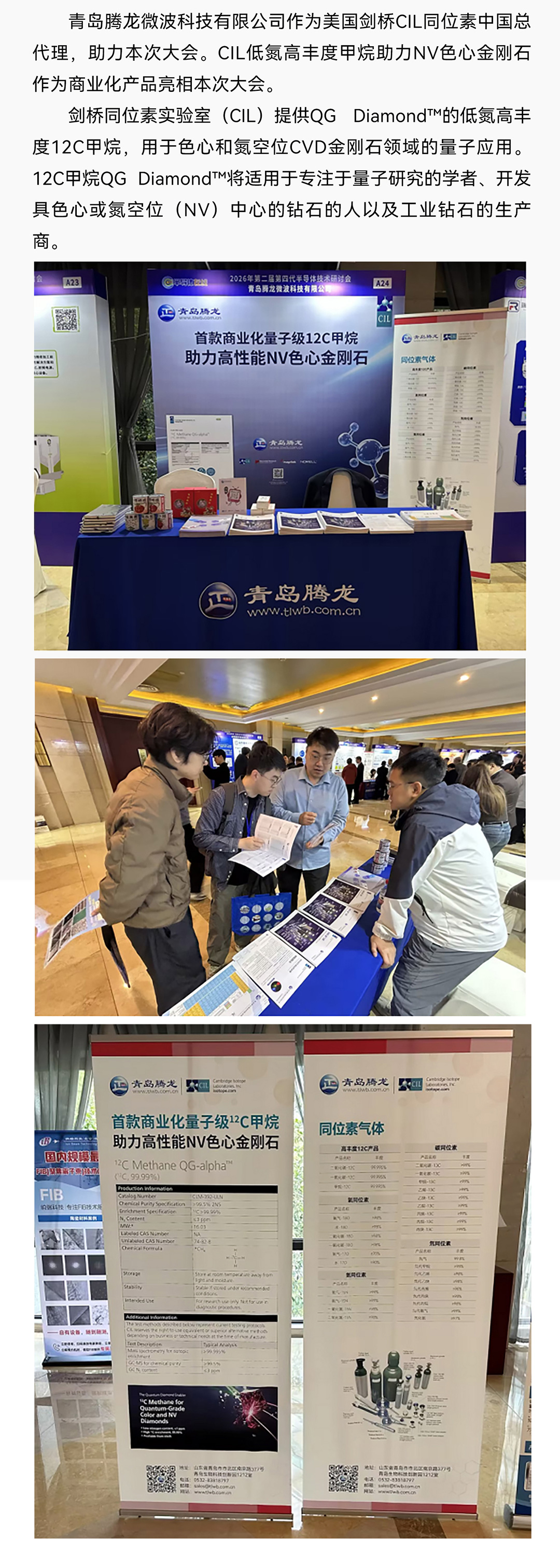 青島騰龍微波科技有限公司作為美國(guó)劍橋CIL同位素中國(guó)總代理,助力本次大會(huì)。CIL低氮高豐度甲烷助力NV色心金剛石作為商業(yè)化產(chǎn)品亮相本次大會(huì)