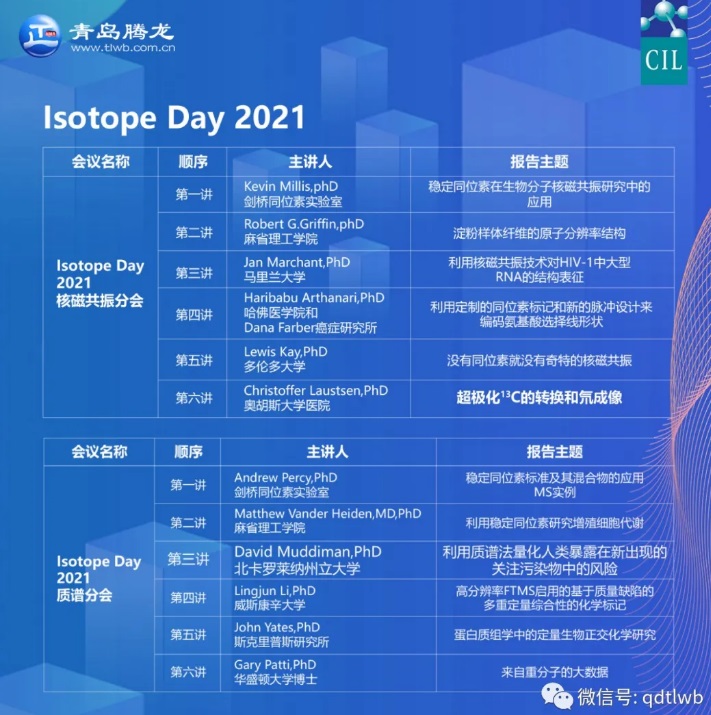 美國劍橋同位素實驗室公司(CIL)主辦的 “Isotope Day 2021”網(wǎng)絡(luò)研討會,于北京時間2021年6月2日 周三 21:00 - 6月3日 周四3:00圓滿結(jié)束。會議一共邀請到12位同位素應(yīng)用方面頂級大咖,圍繞核磁共振和質(zhì)譜兩個分會主題,報告涵蓋:代謝追蹤、定性定量、結(jié)構(gòu)確定與成像。