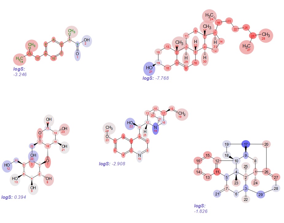 A new proprietary fragmentation method and statistical validation to derive explanatory and predictive QSPR models. Obtain a wide range of physic-chemical property predictions for your studies all within your Mnova application. Includes model building capabilities! If you have data of a particular property you are interested in, we can build a model for you. Clear warning messages when the prediction is outside of the predictive model. Display the atom by atom contribution to each of the properties in a simple manner. |