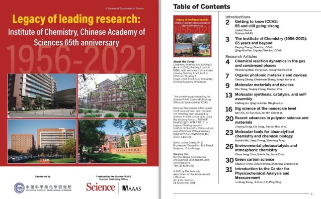 《Science》發(fā)布中國科學院化學研究所建所65周年特刊